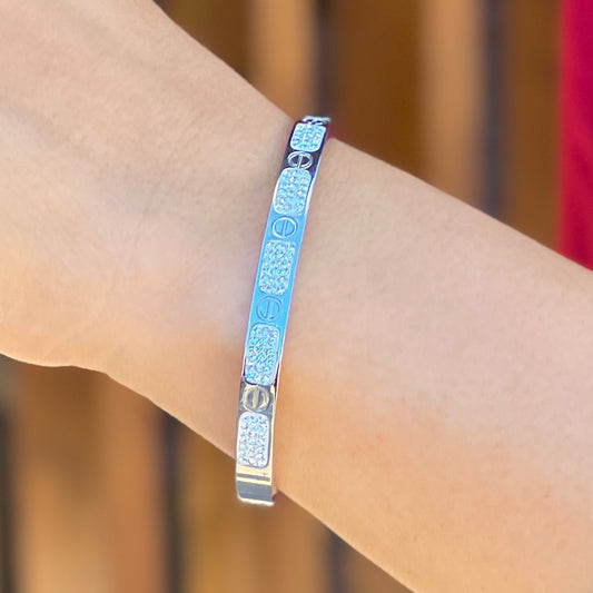Sold outCrystal Ellipse Silver Bangle