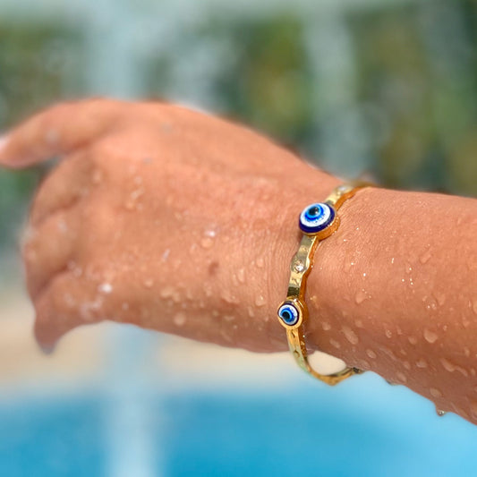 Evil Eye Thin Silver Bangle