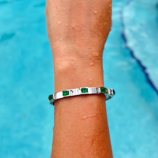 Green Crystal Silver Bangle