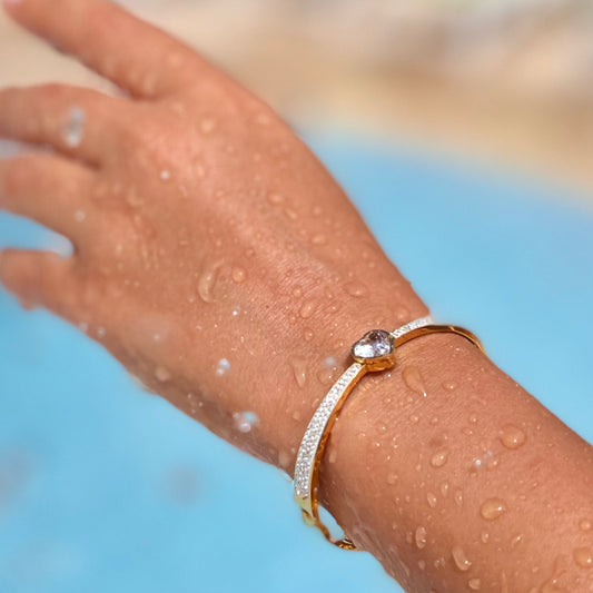 Crystal Heart Gold Bangle