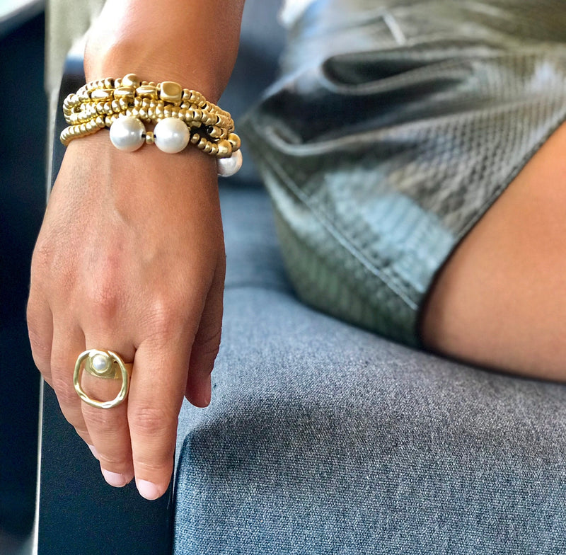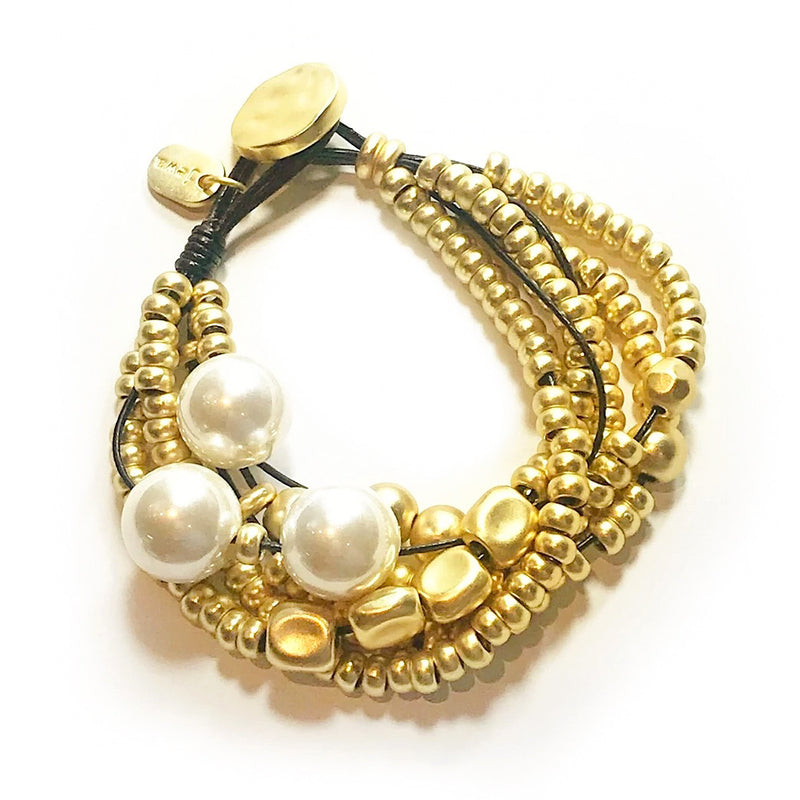 Gold Plated Beads With Pearl Bracalet