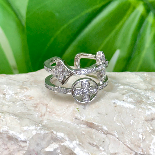 Double Quartz Clover Silver Ring