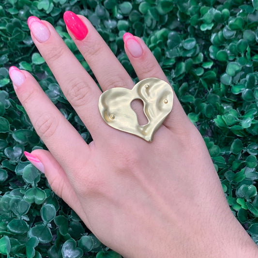 Gold Heart Lock Chain Ring