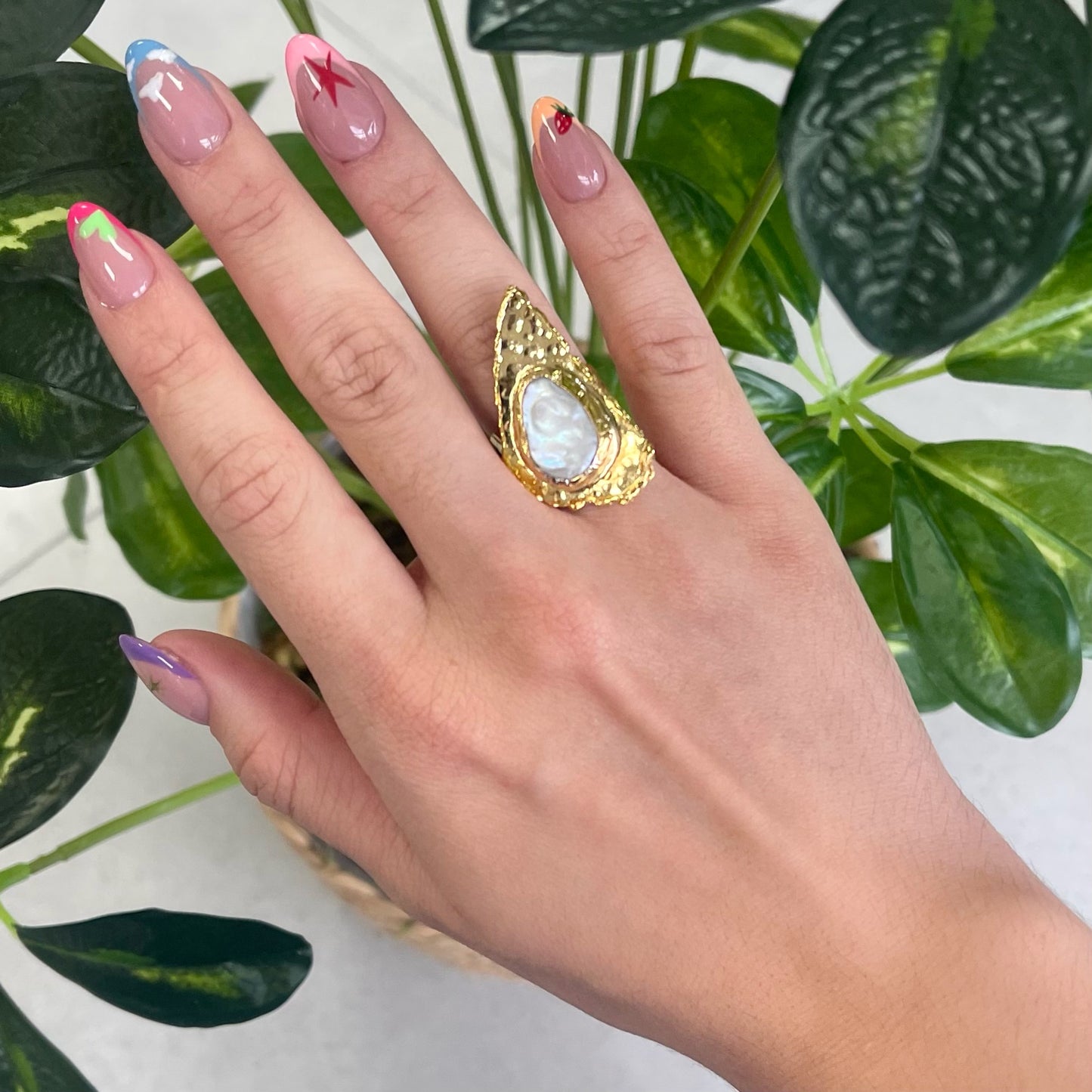 1 Pearl Triangle Gold Ring
