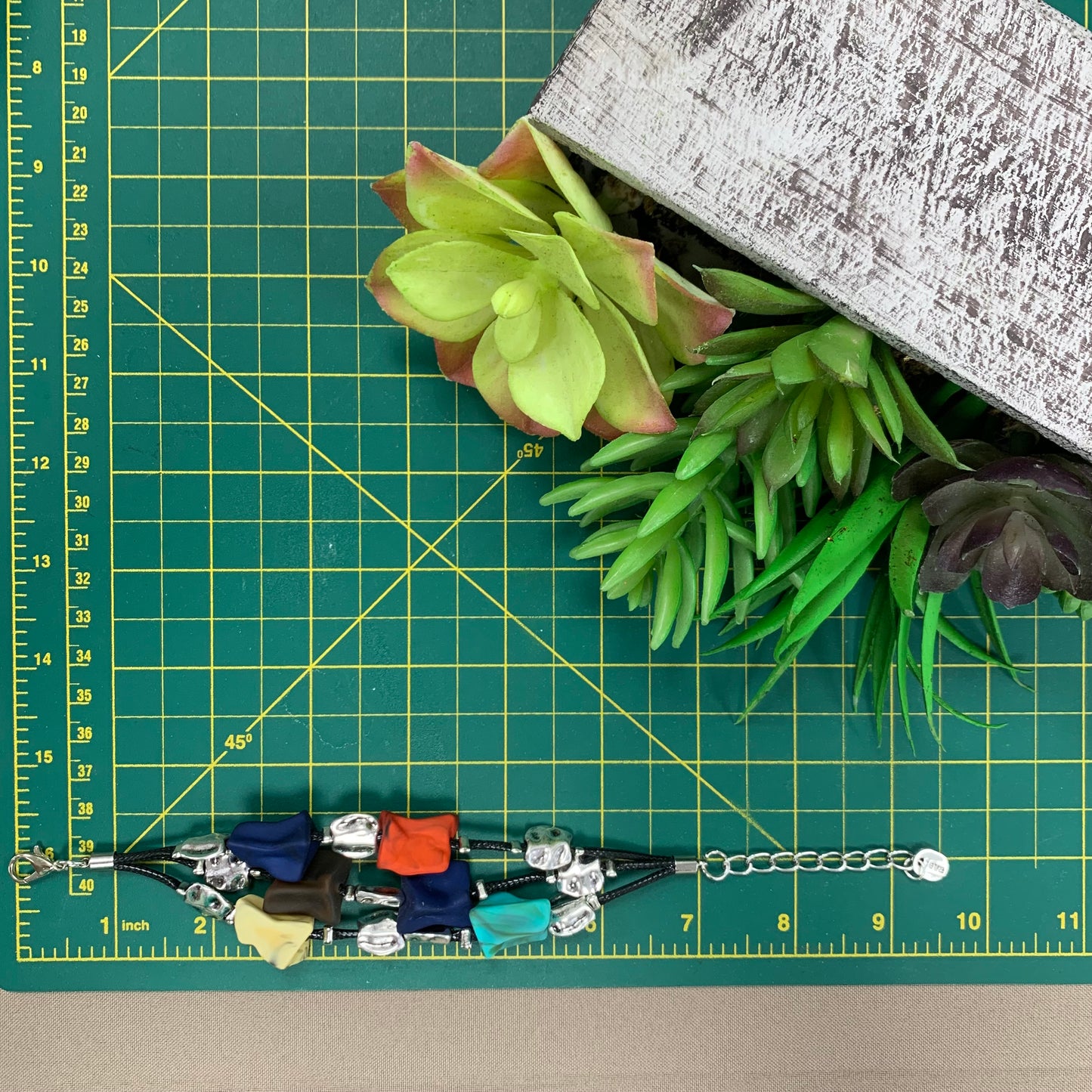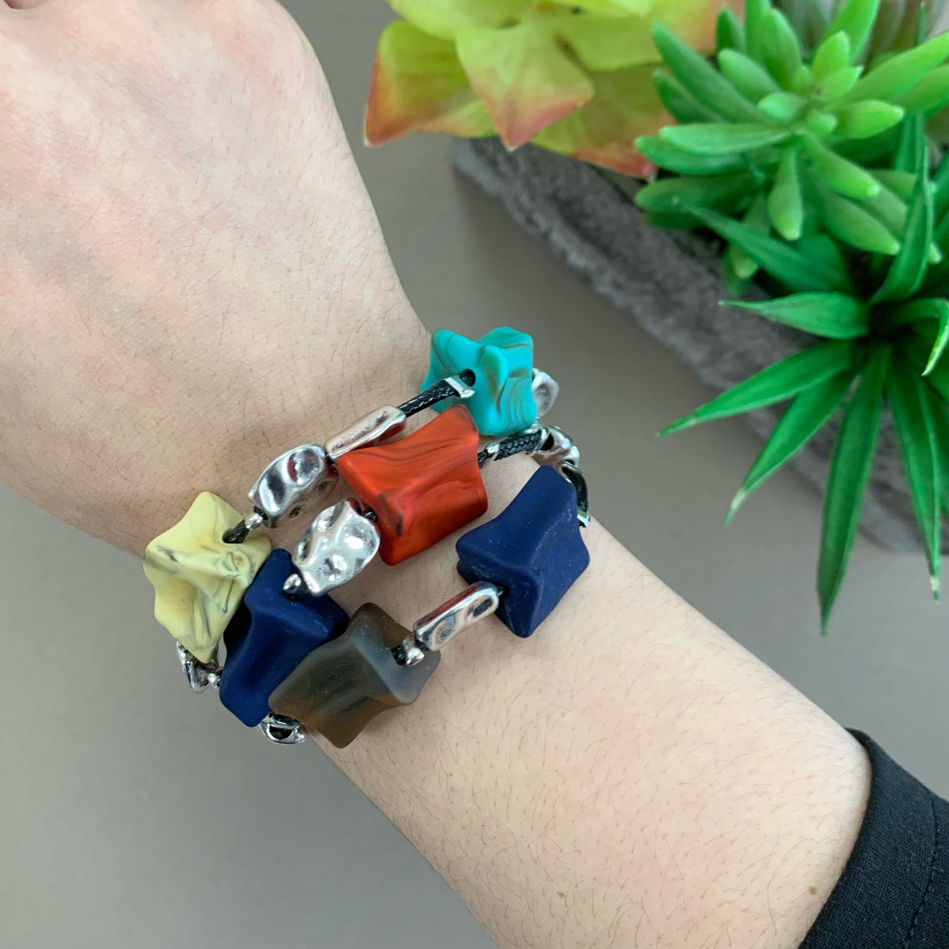 3 Layers Black Cord Colorful Silver Bracelet