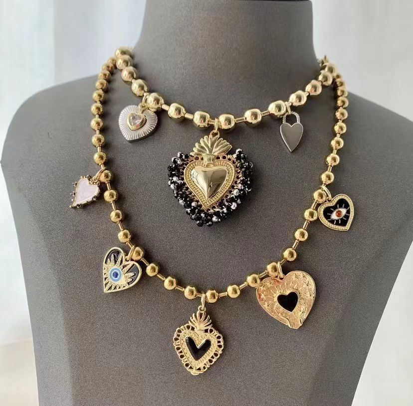 Black Heart With Bubbles Gold Necklace And Pendant