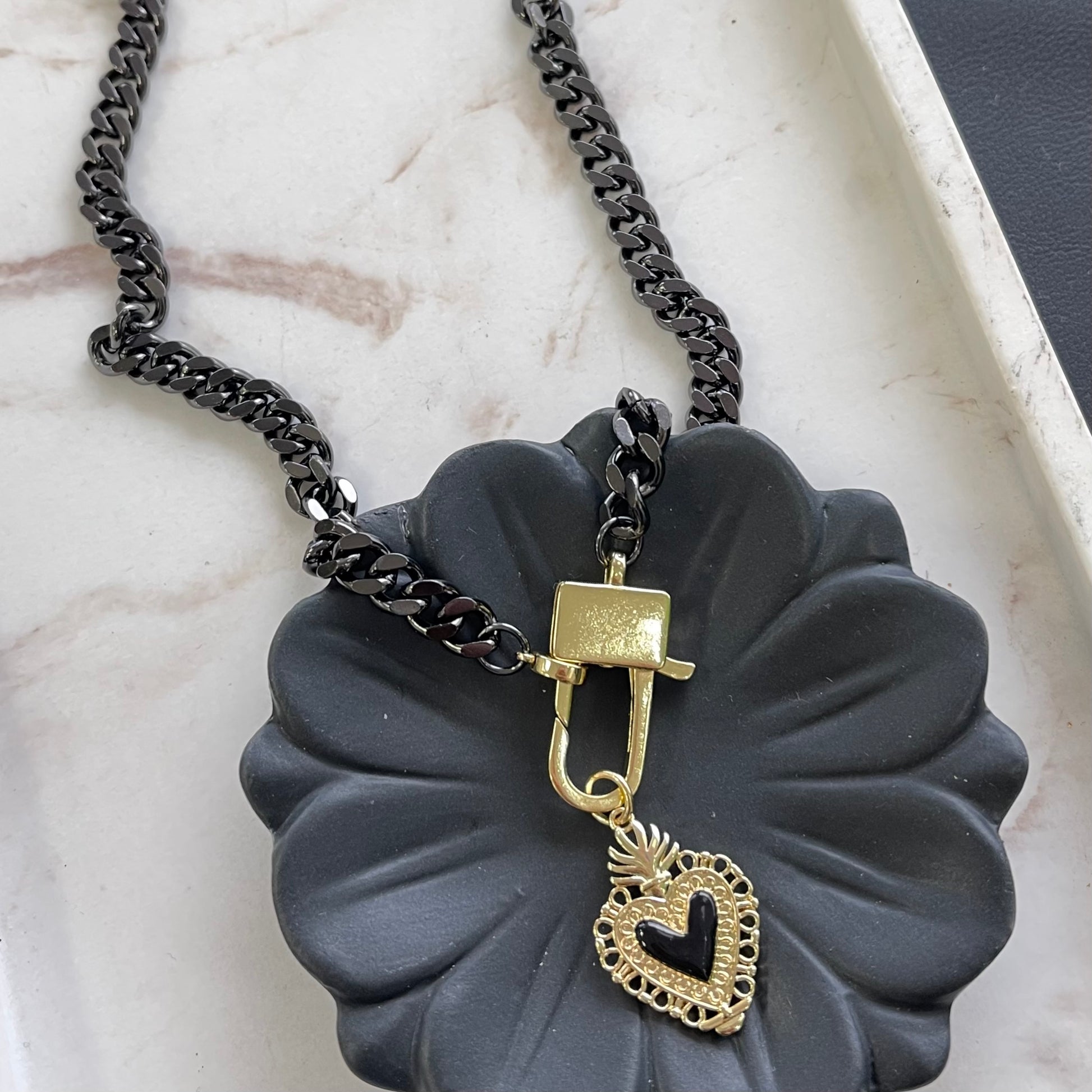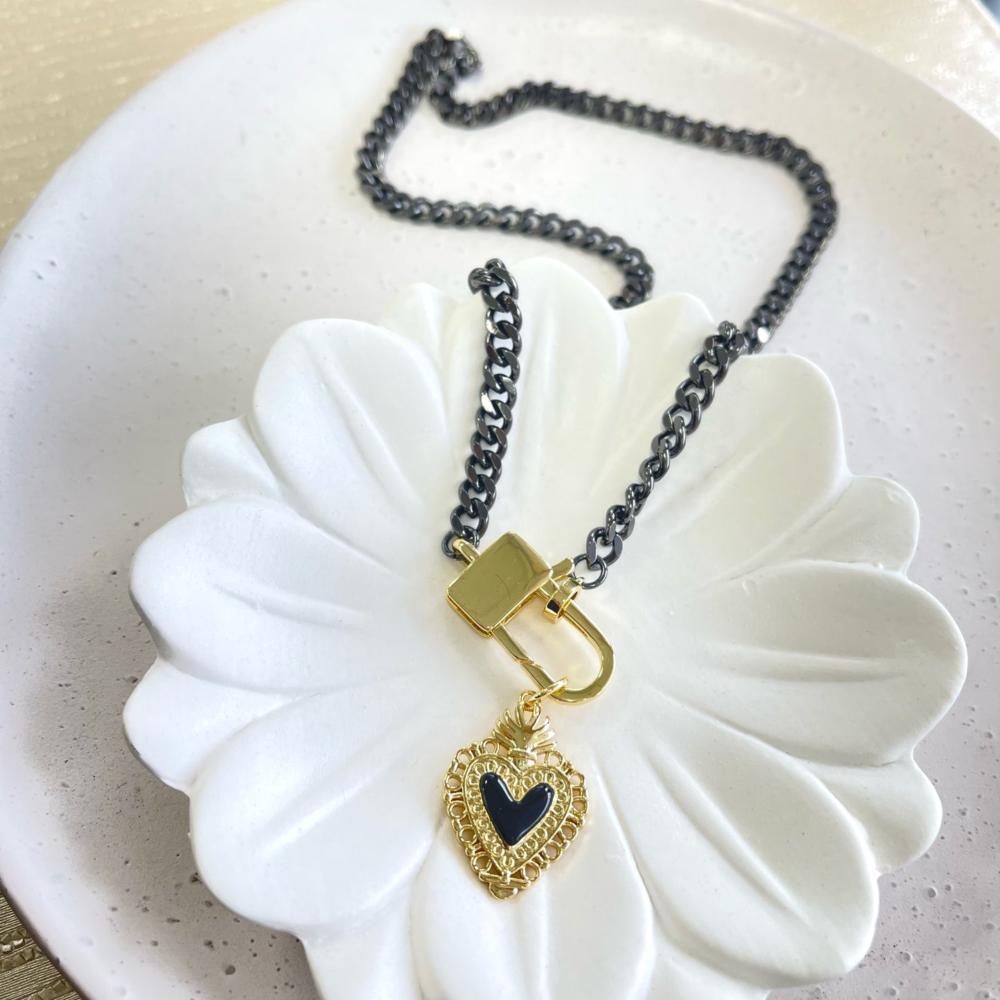 Chain Black With Heart Pendant