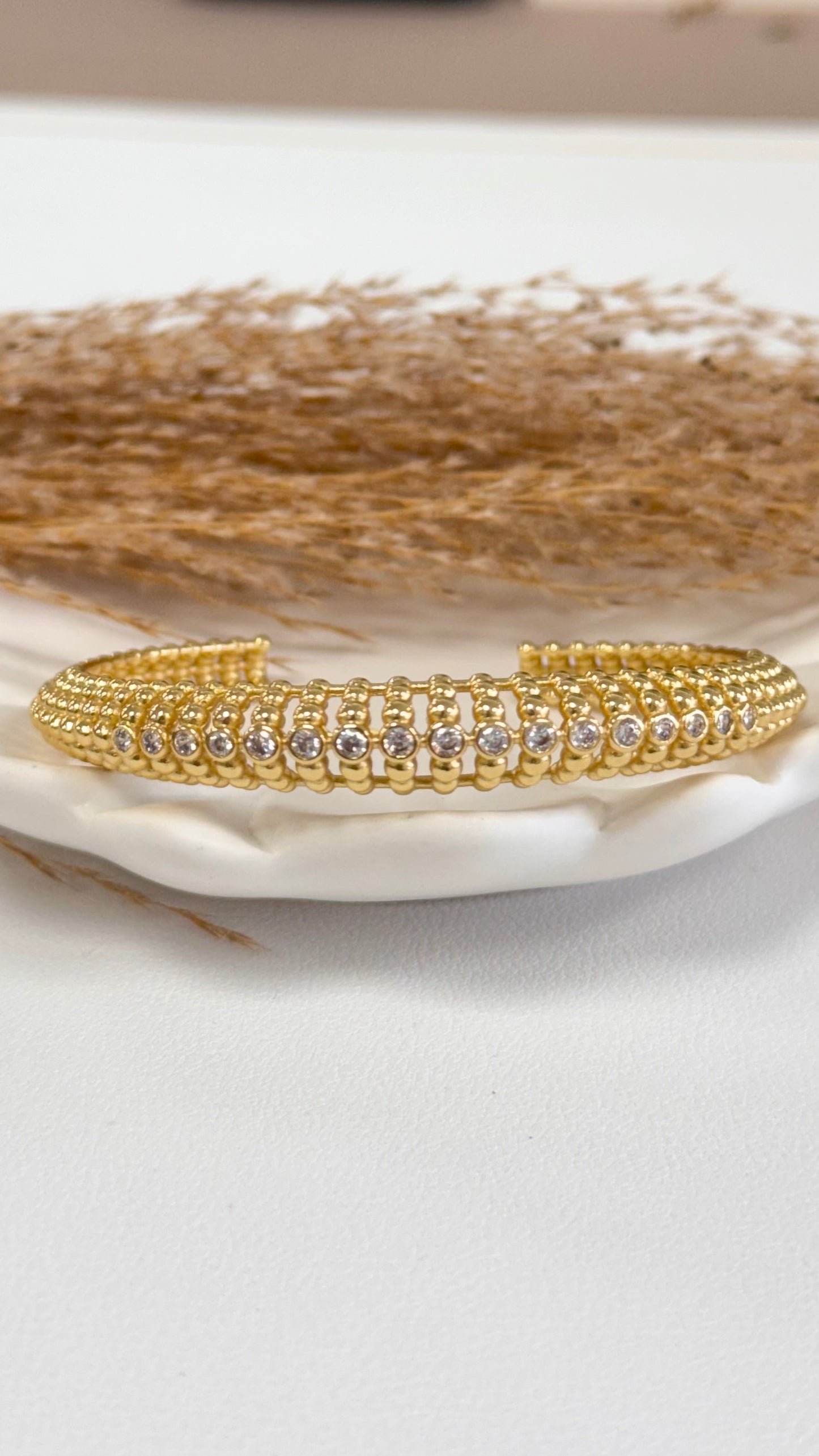 Cuff Gold Clear Stones Line Bracelet