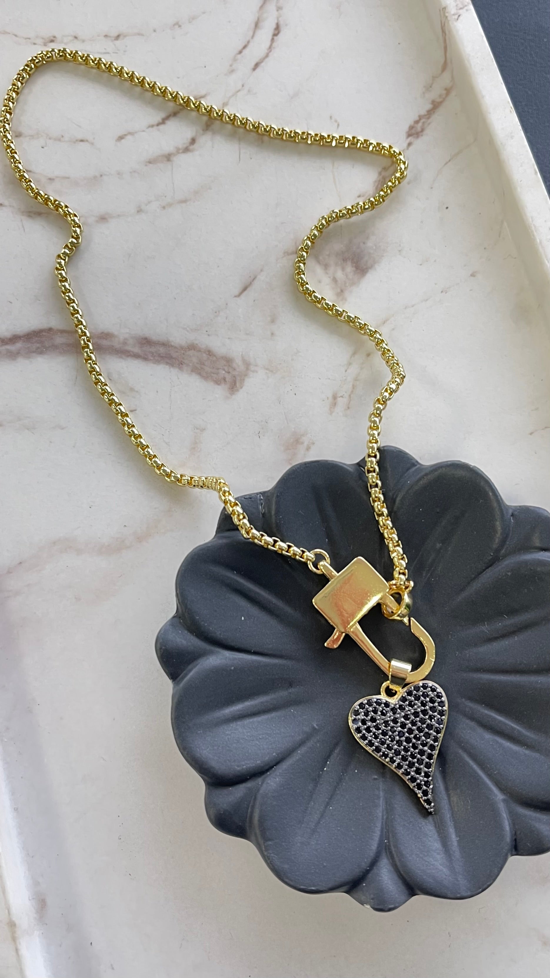 Gold Chain With Black Quartz Heart Necklace