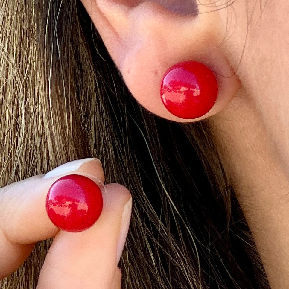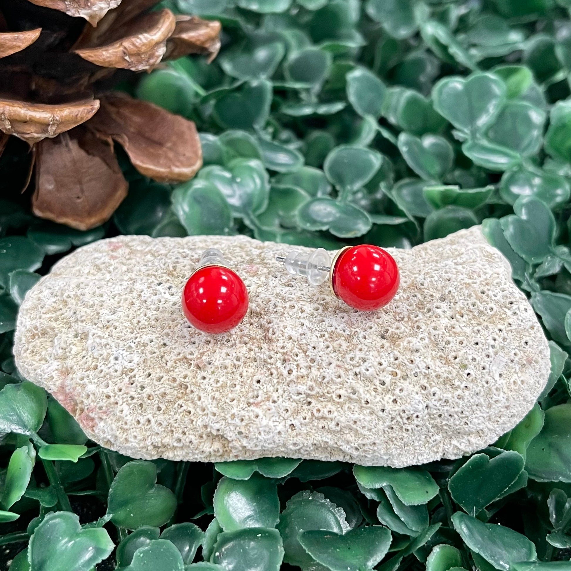 Gold Red Ball Earring