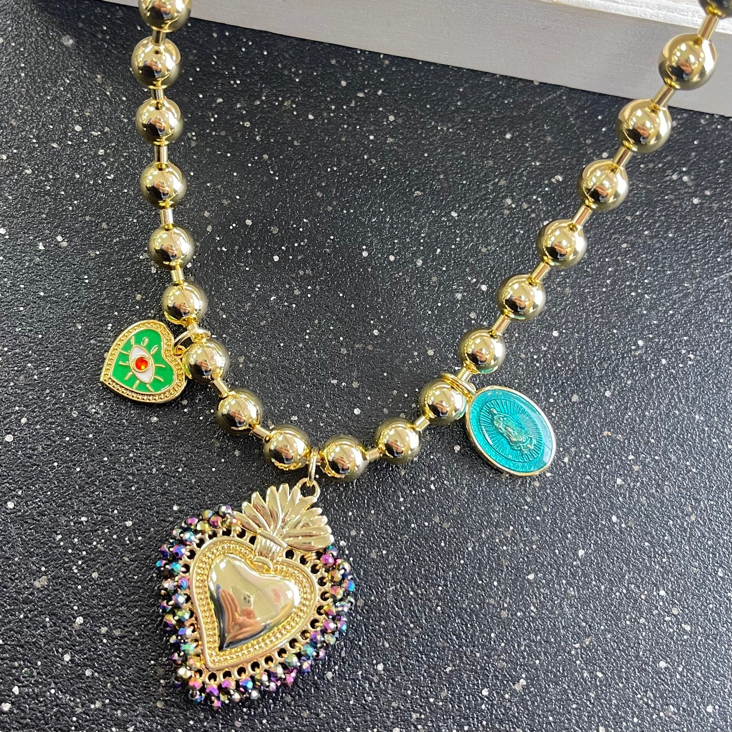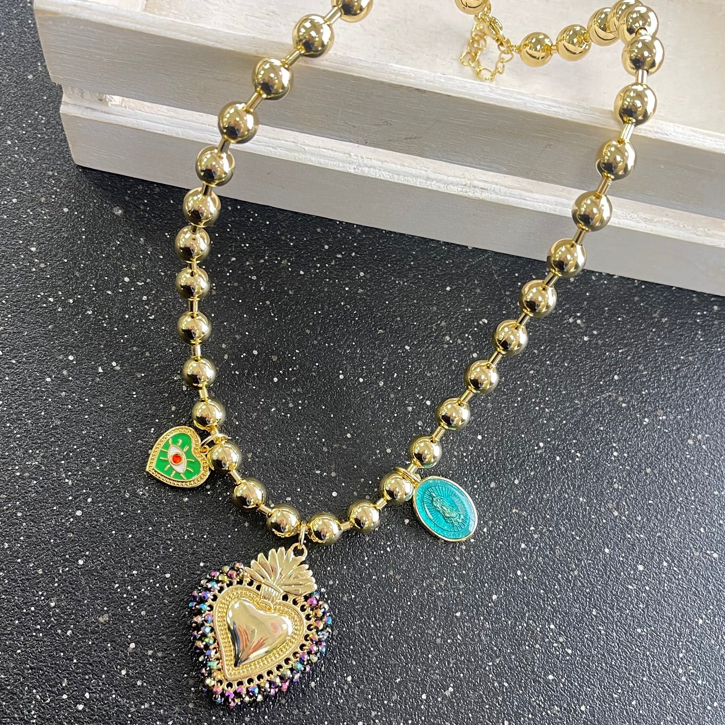 Multicolor Heart With Pendants Necklace