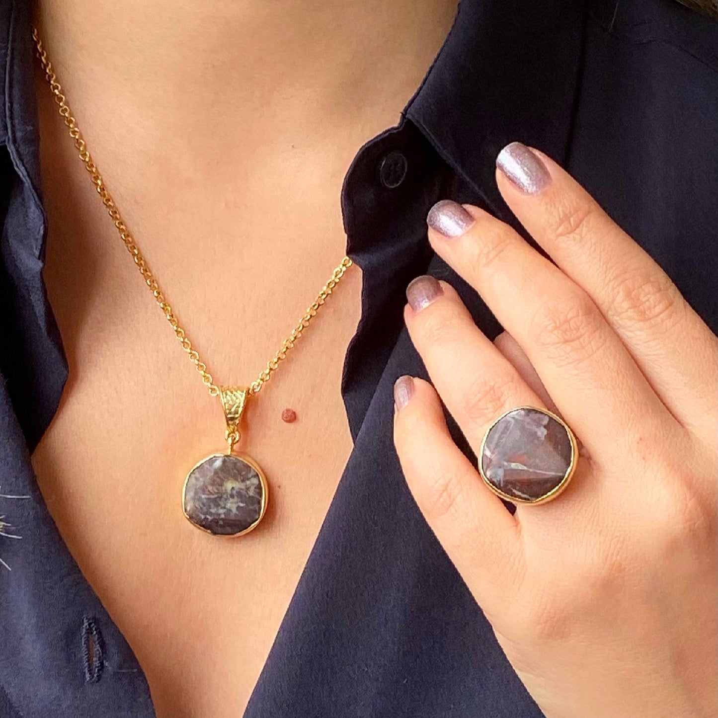 Raw Cut Brown Ombré Necklace & Ring Set
