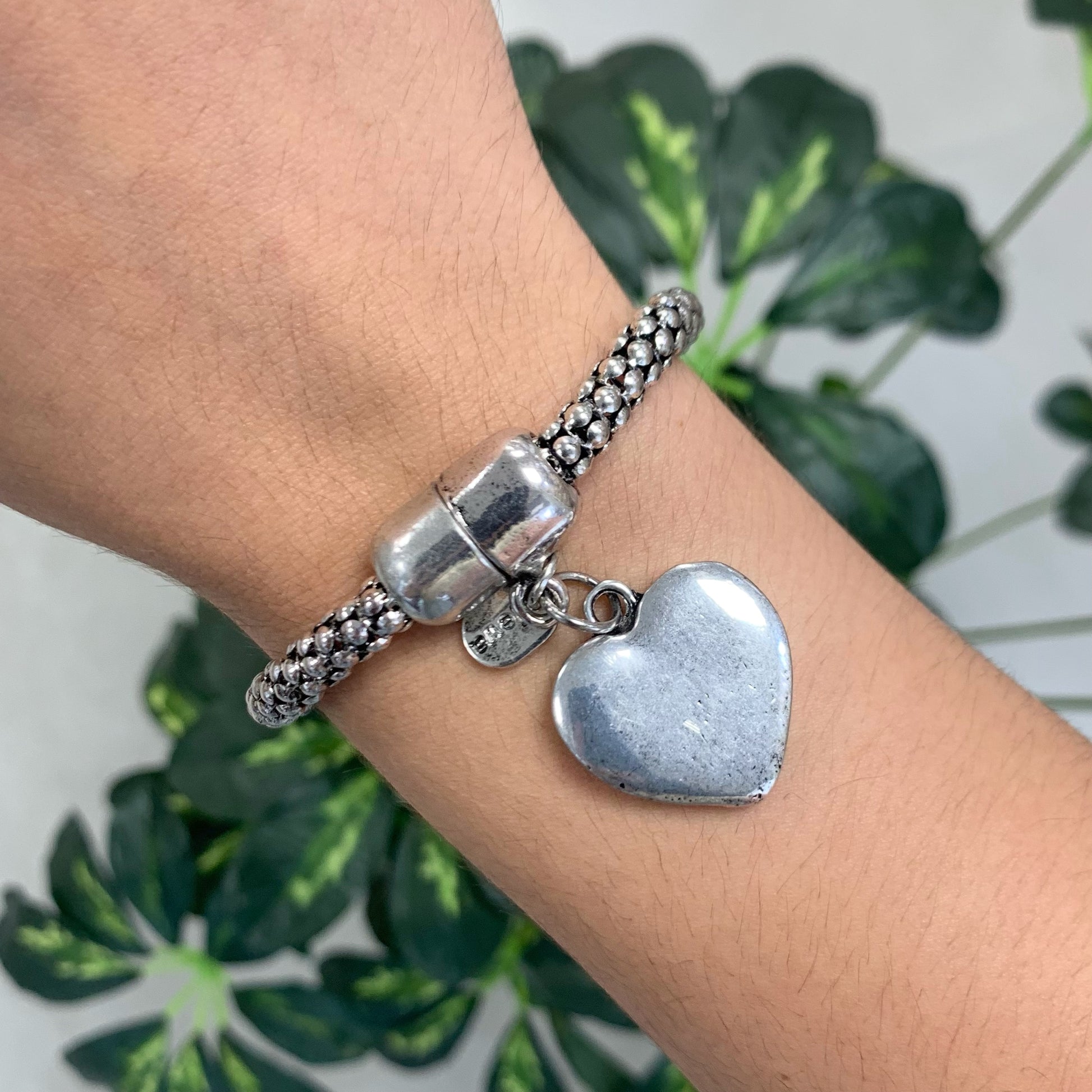 Silver Bracelet With Hanging Heart
