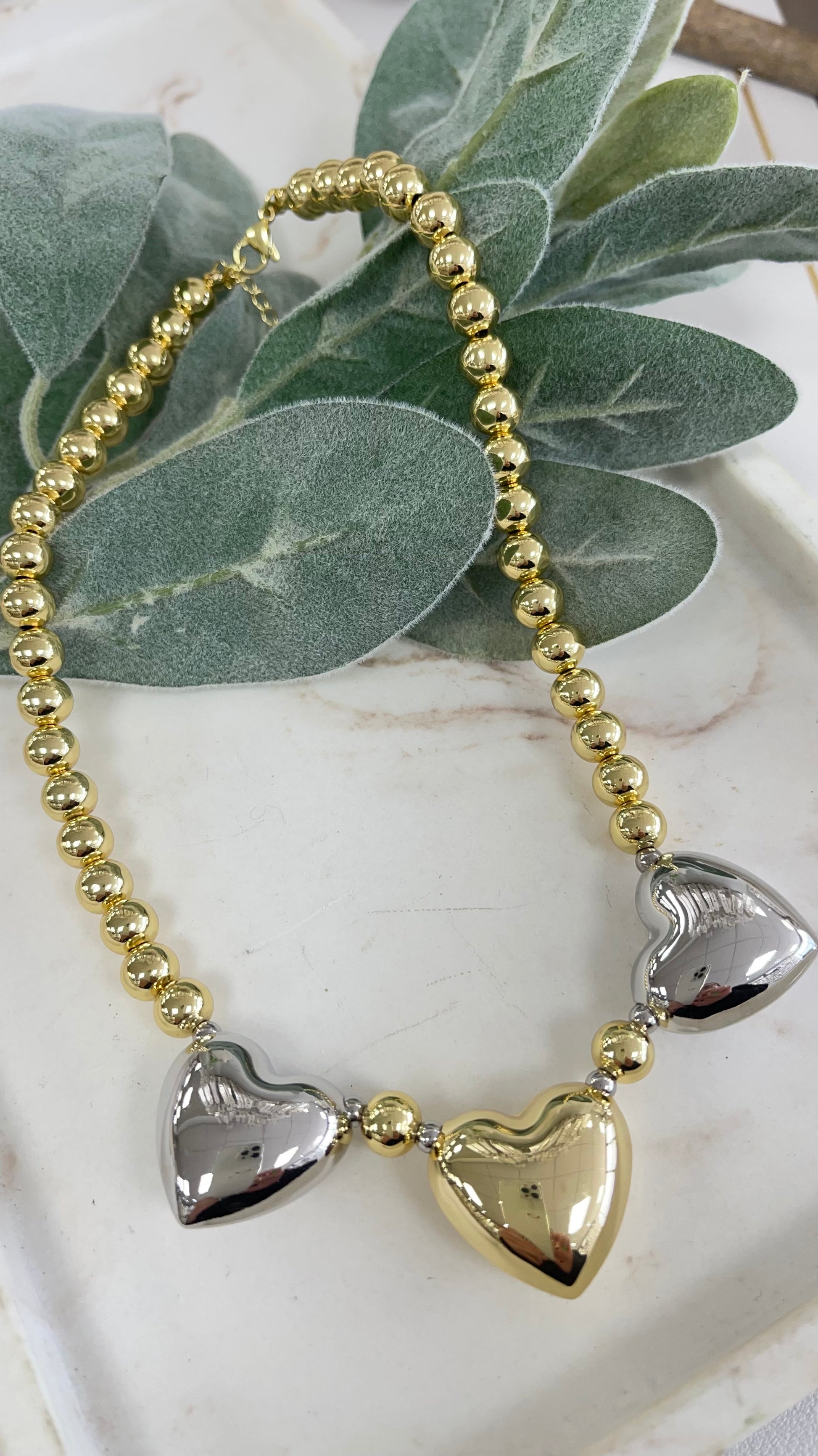 Two Tone Bubbles Hearts Necklace